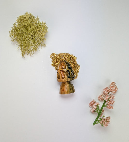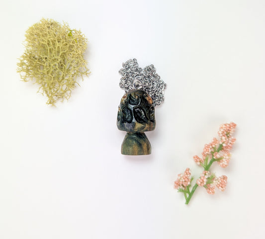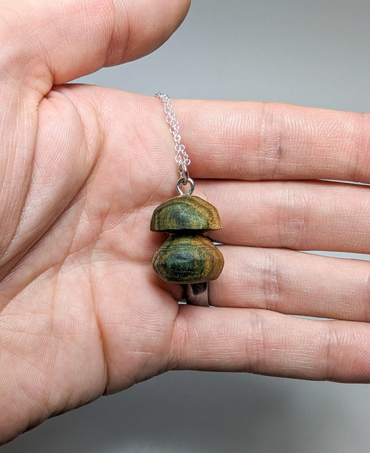 Naturally Fungus-Stained Wooden Pendant | Small Mushroom, Mebbe Russula?
