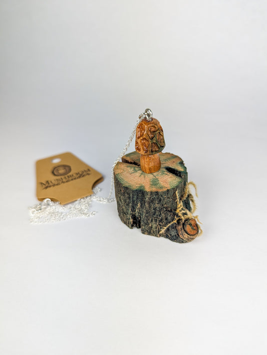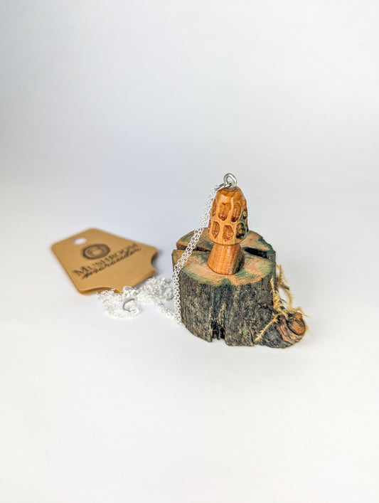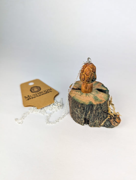Naturally Fungus-Stained Wooden Pendant | Morel Mushroom #20
