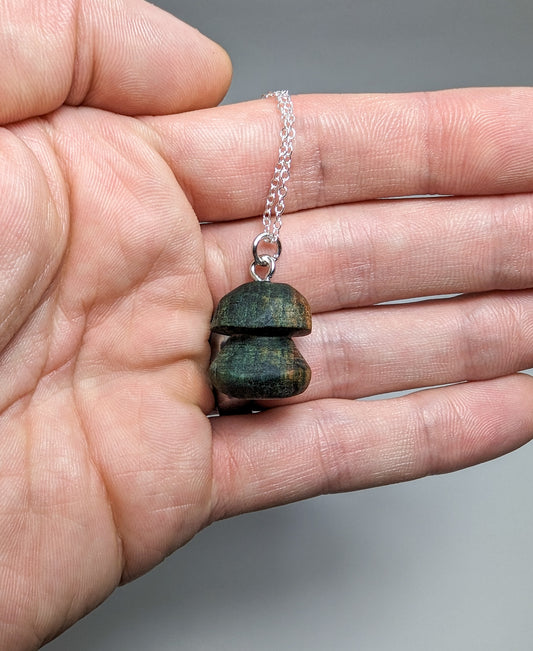 Naturally Fungus-Stained Wooden Pendant | Porcini Mushroom #6