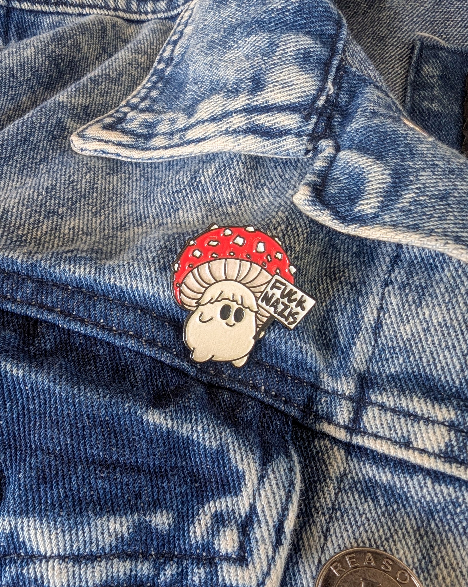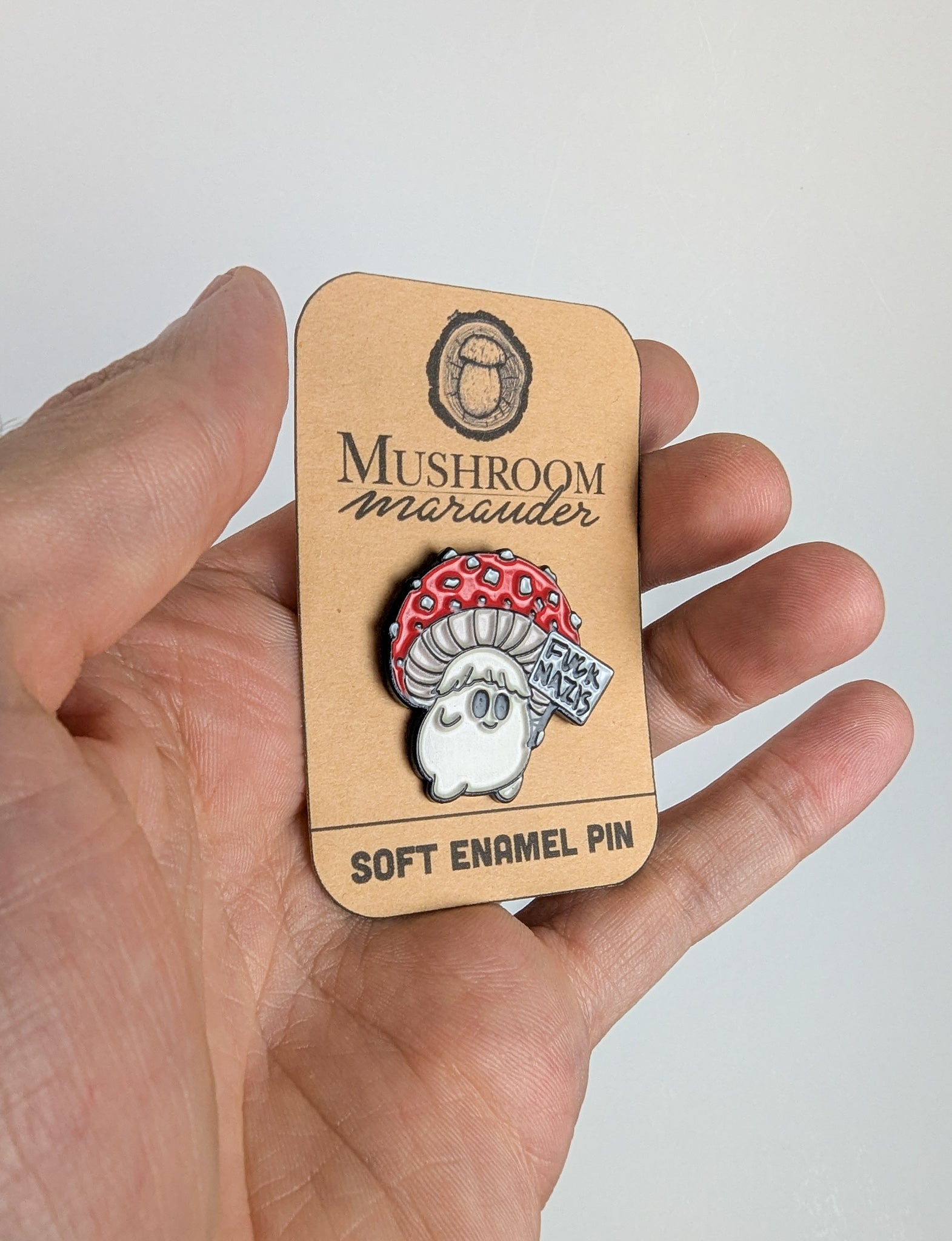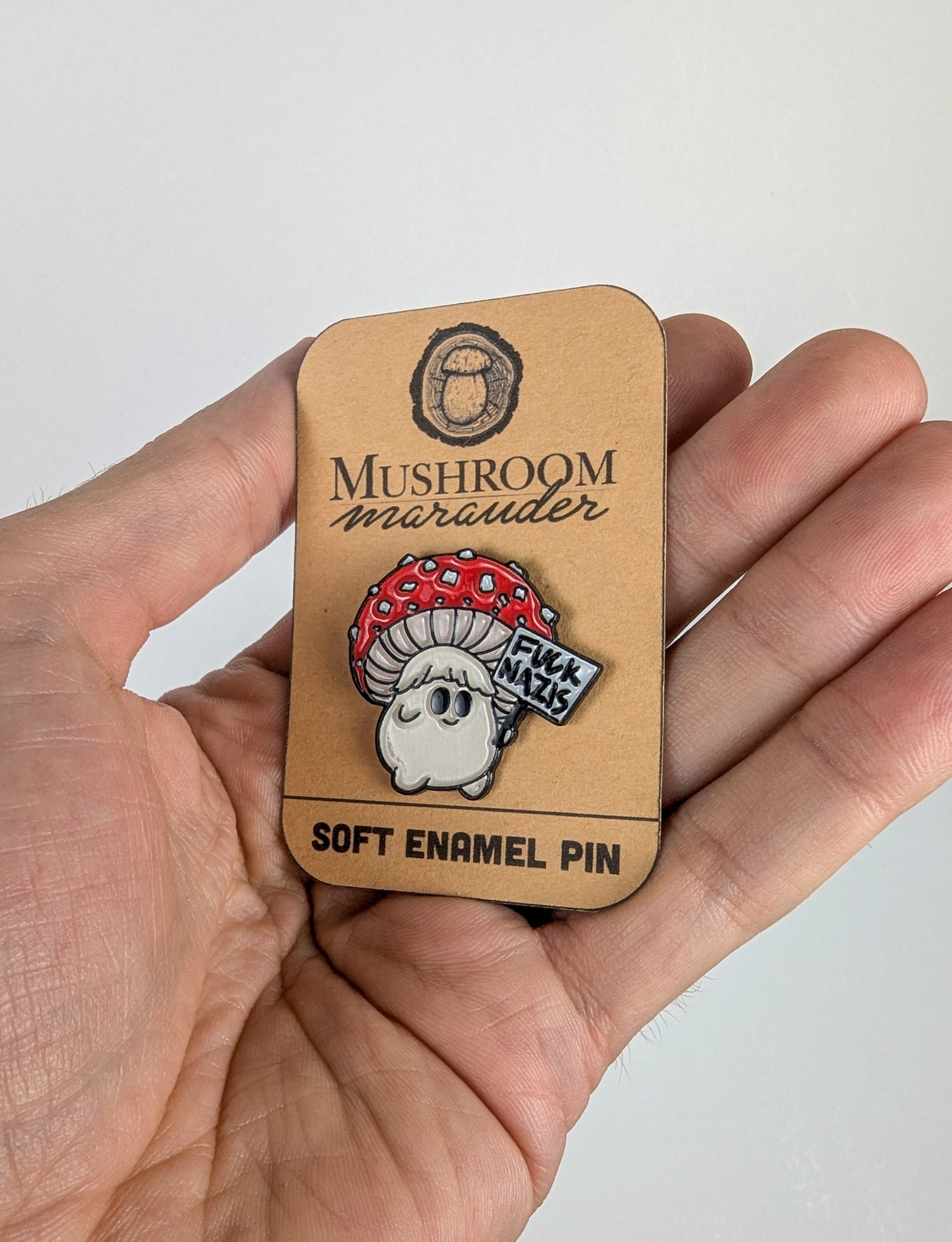 Fuck Nazis Picketing Amanita Mushroom | Soft Enamel Pin