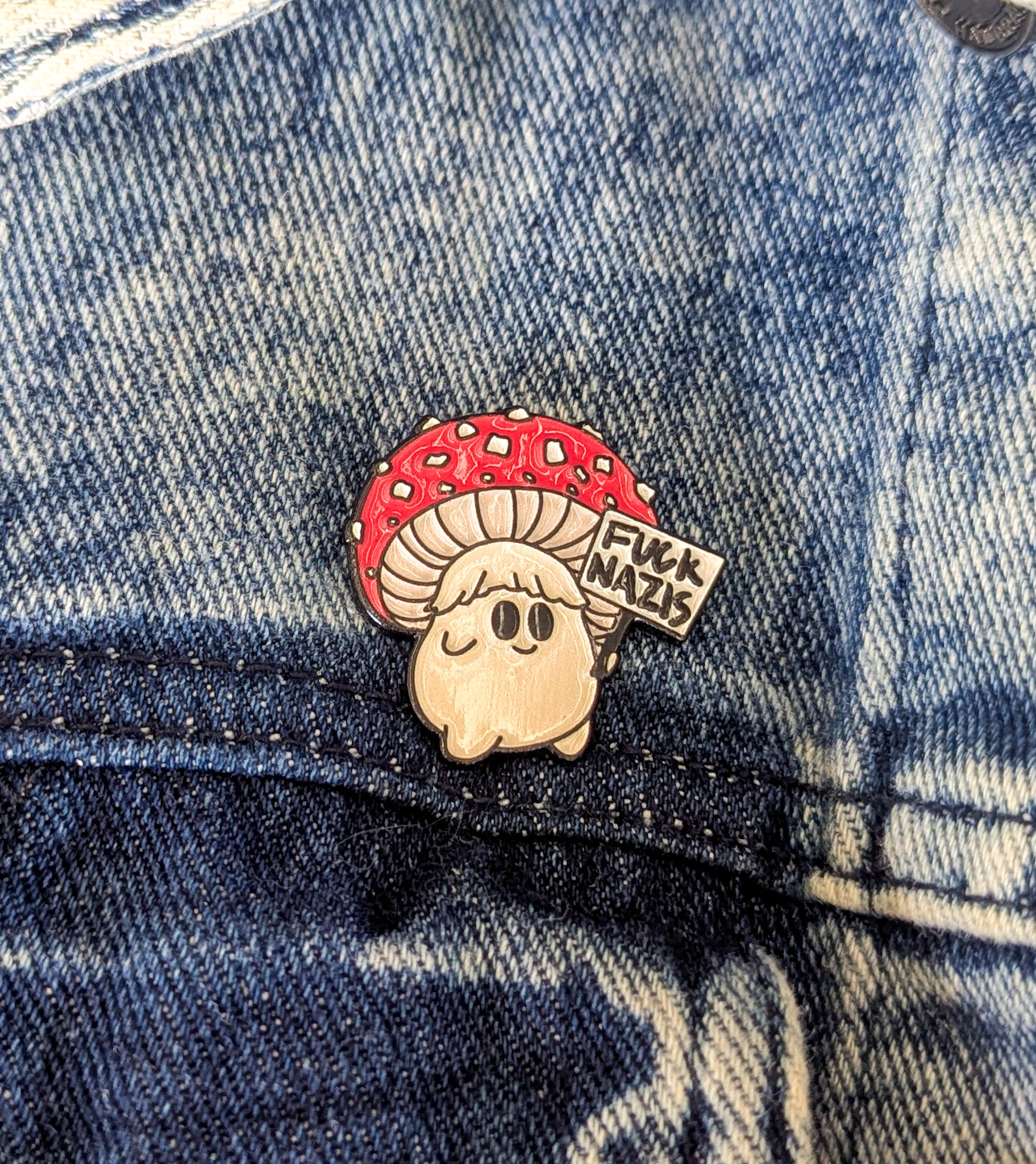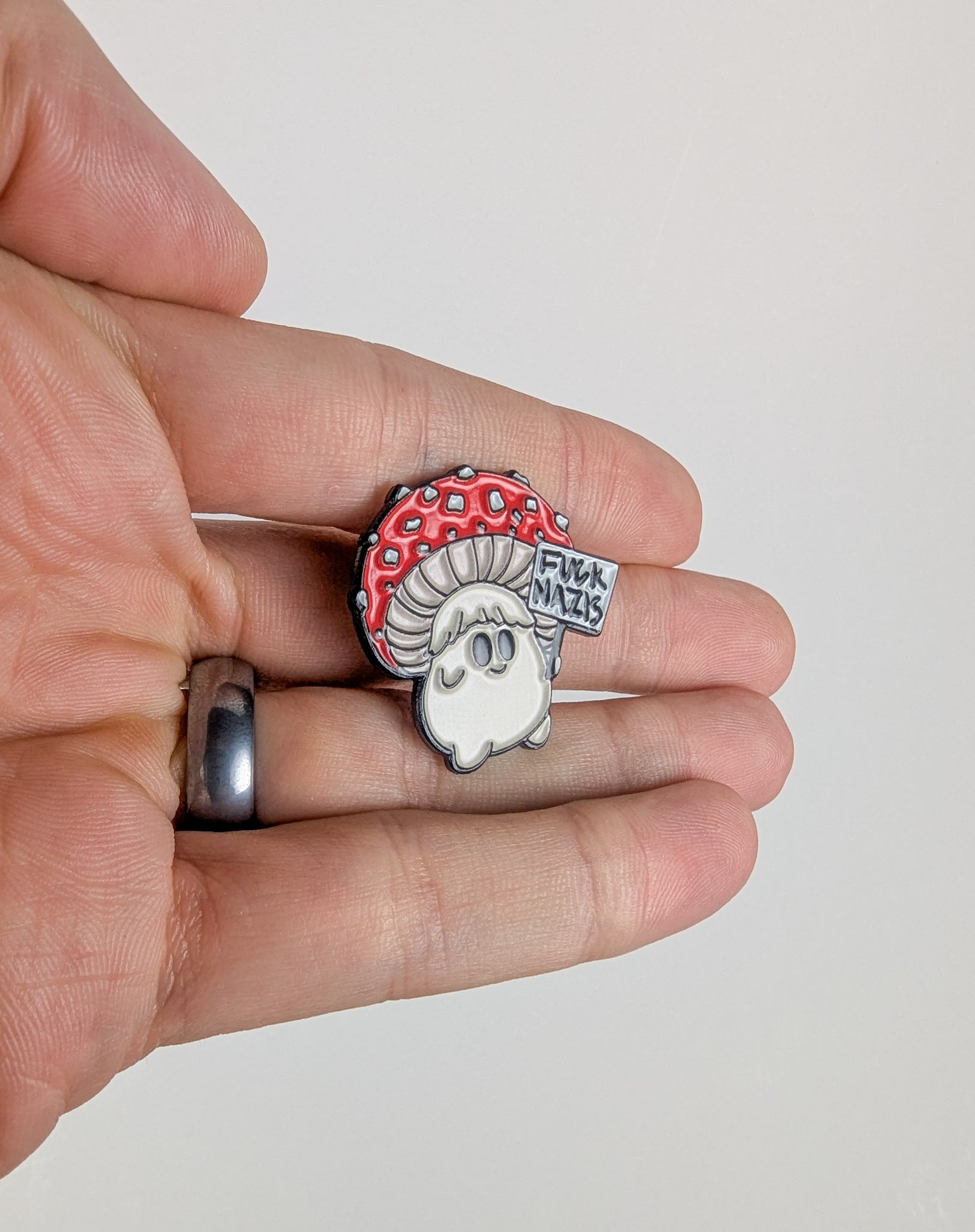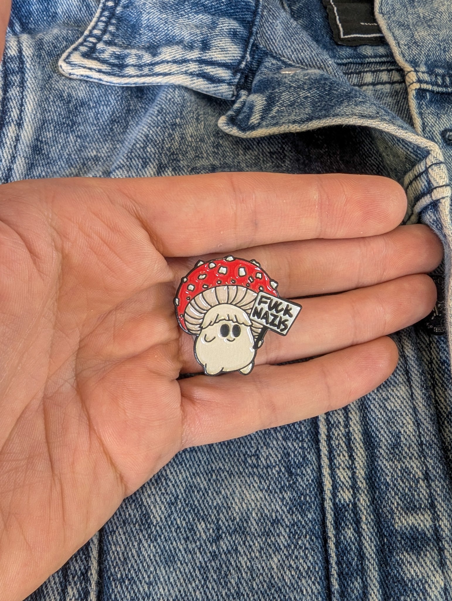 Fuck Nazis Picketing Amanita Mushroom | Soft Enamel Pin