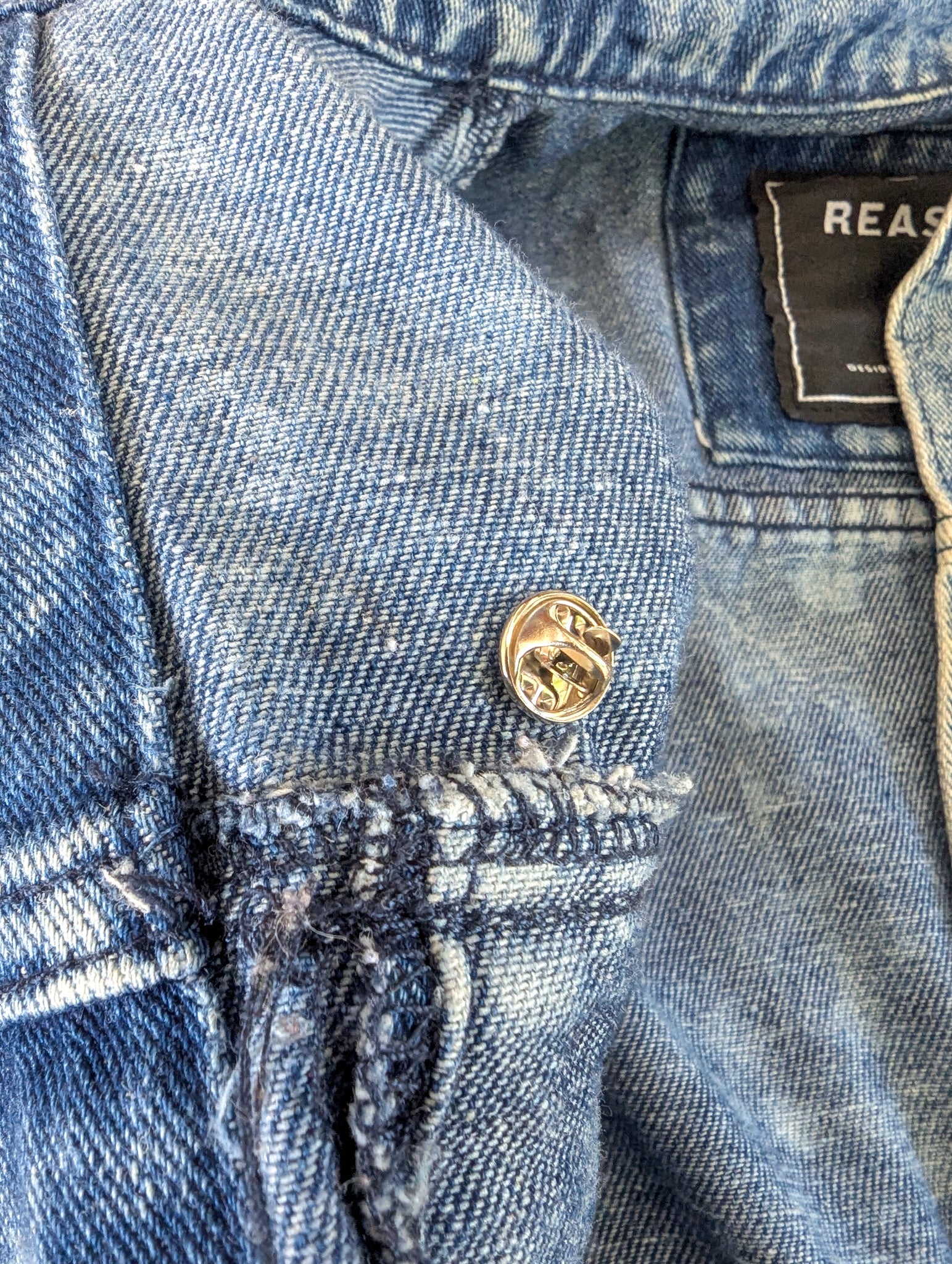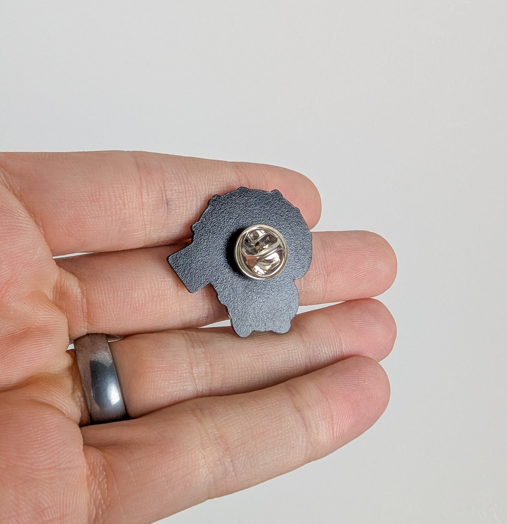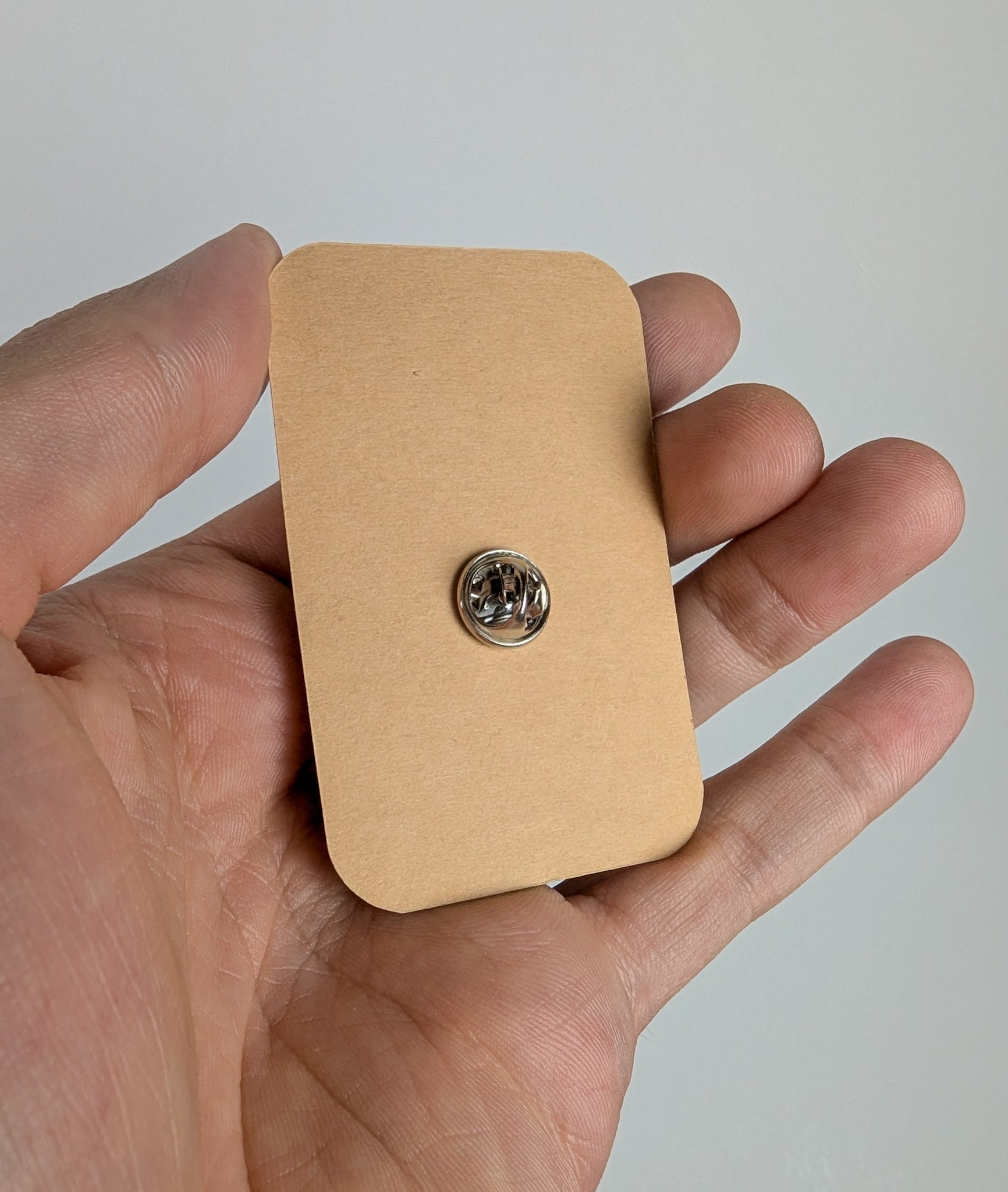 Huzzah! Our very first enamel pin, and holy smokes it looks great! This classic-style soft enamel pin is detailed and sturdy, with a metal butterfly clasp to ensure it stays firmly clasped to whatever you decide to pin it to. They are die-struck, so have a slightly raised, textured feel to the front of the pin. It will make a perfect addition to clothes, backpacks, purses, tote bags, etc.