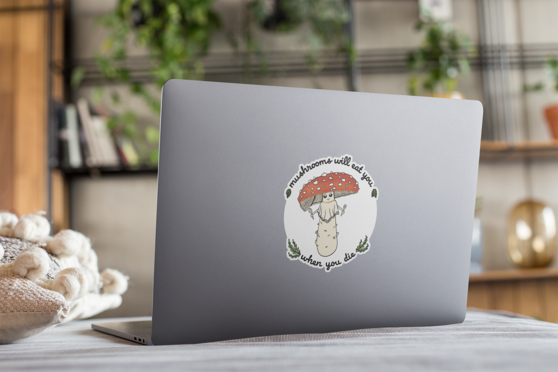 Mushrooms Will Eat You When You Die | Funny Amanita Mushroom Sticker