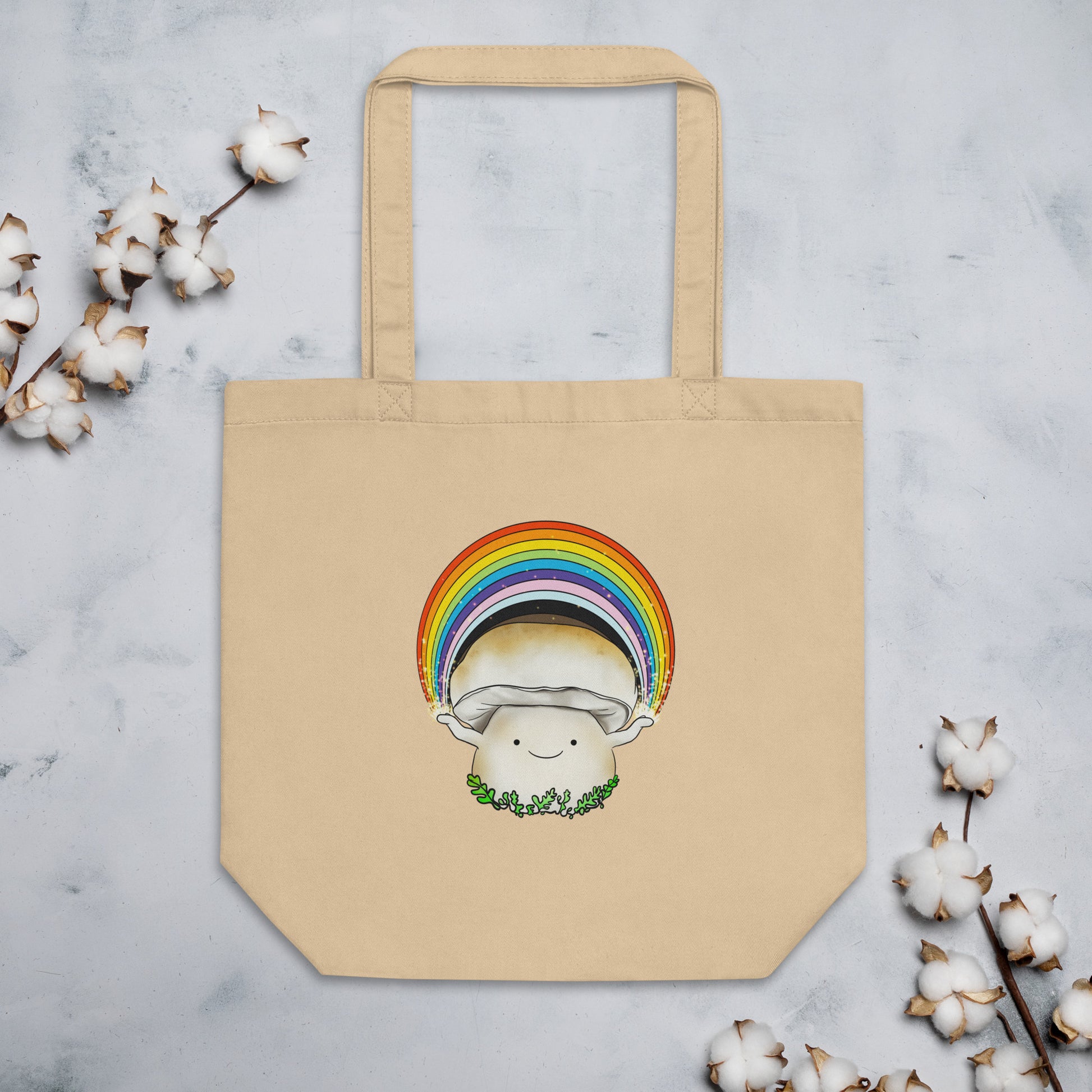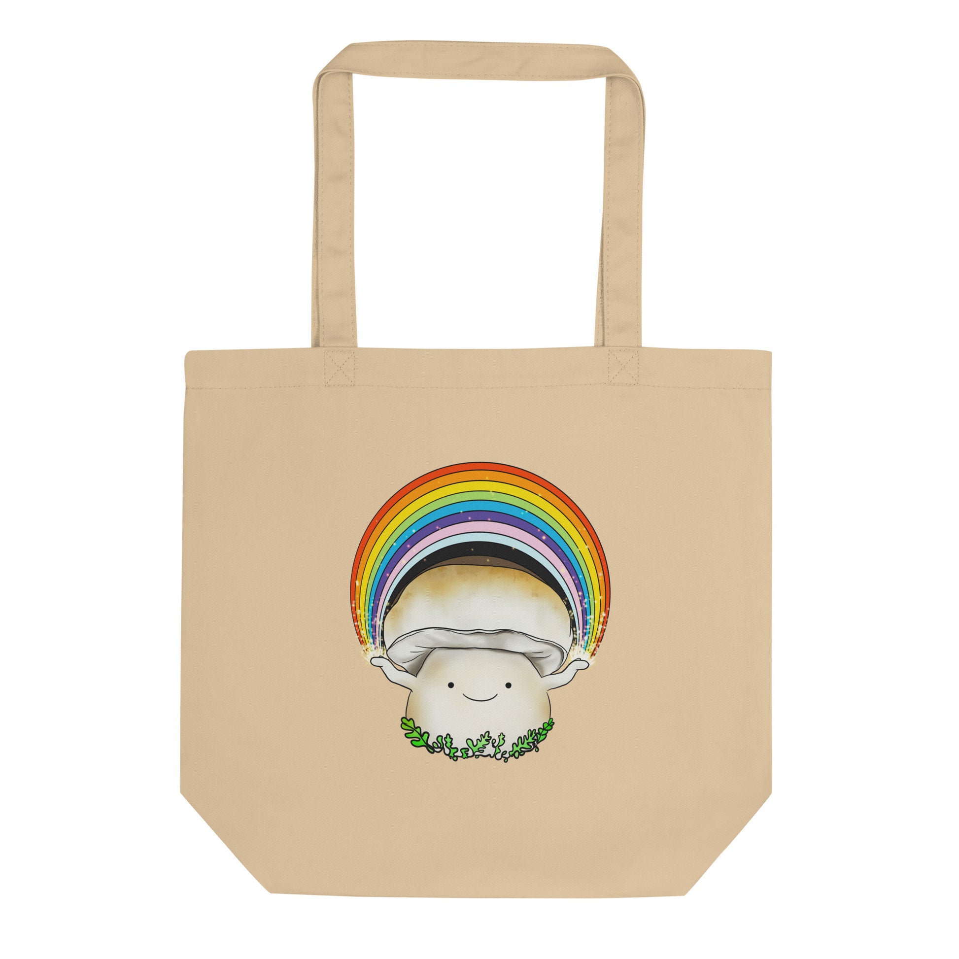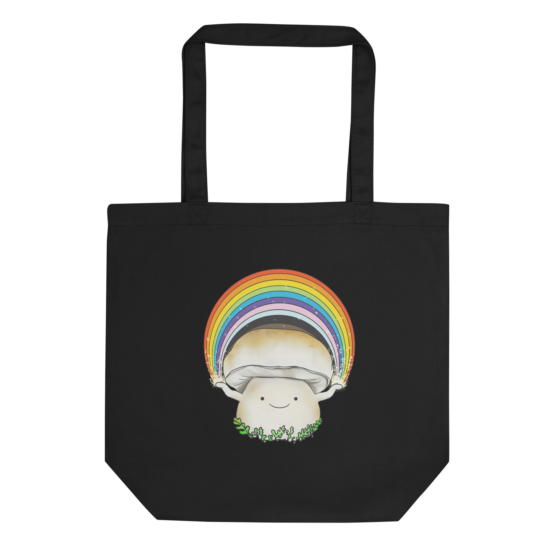 Porcini Mushroom Holding Pride Rainbow | Eco-Friendly Tote Bag | Adorable Pride Mushroom Artwork
