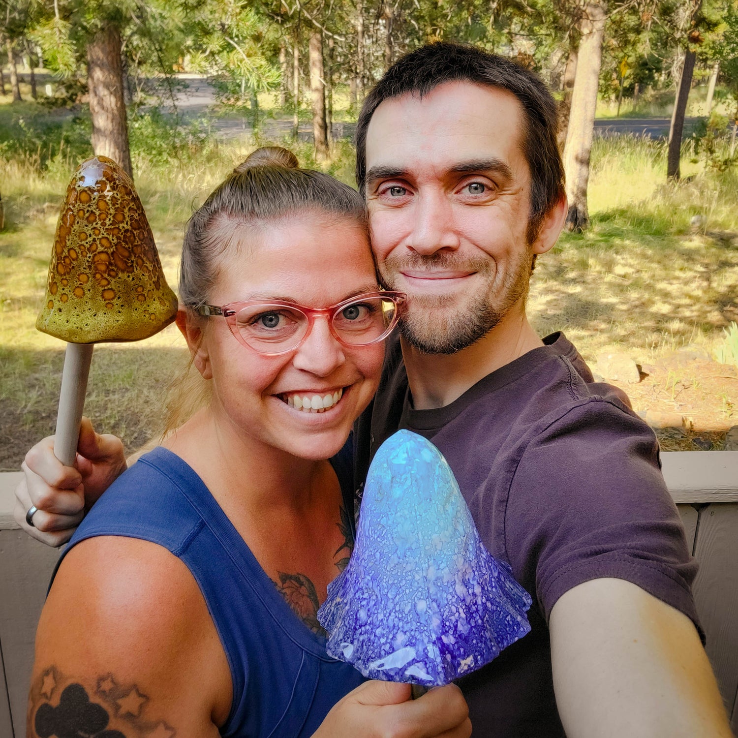 Selling Adam's fungi-colored wooden carvings to a few friends has blossomed into selling an array of his Chlorociboria Creations and his wife Suzi's artwork to all 50 states and a dozen countries in just two years!