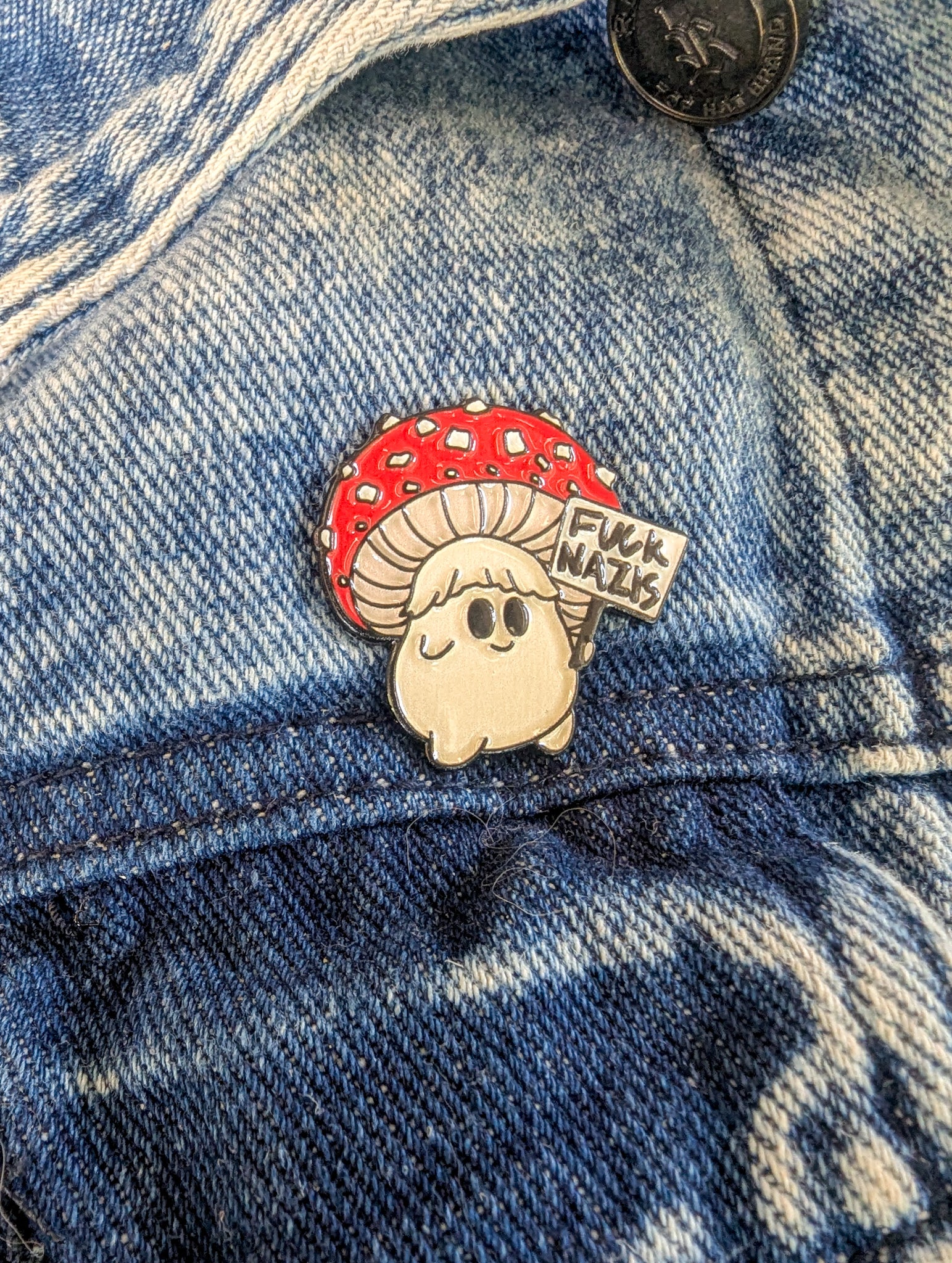 Fuck Nazis Picketing Amanita Mushroom | Soft Enamel Pin